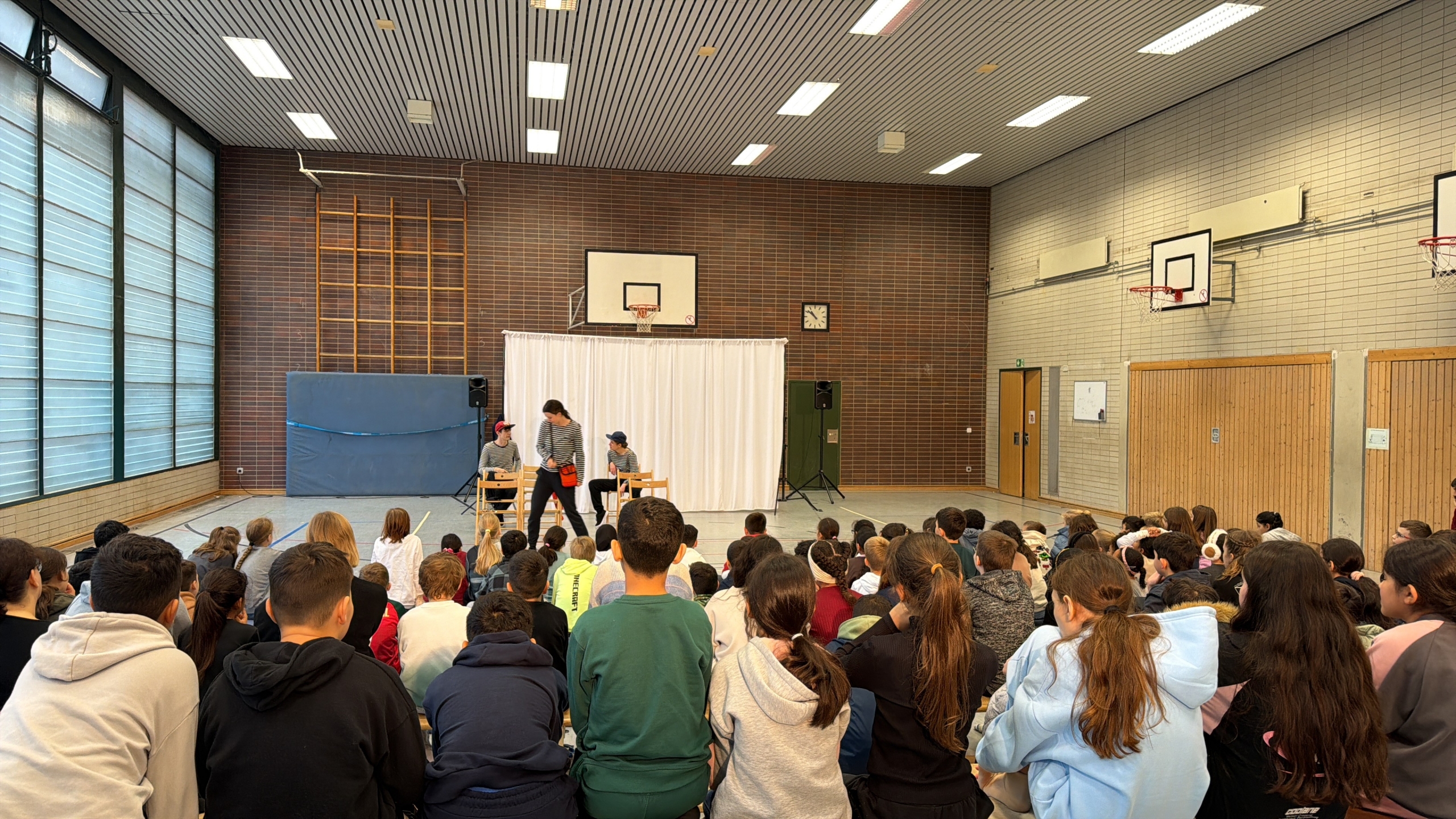 Im Anschluss an die Vorstellung kamen die Klassen in Workshops mit den Theaterpädagoginnen und -pädagogen ins Gespräch. Dort konnten sie Fragen stellen, Szenen reflektieren und herausarbeiten, wie die Inhalte in ihrem eigenen Schulalltag Bedeutung finden.
