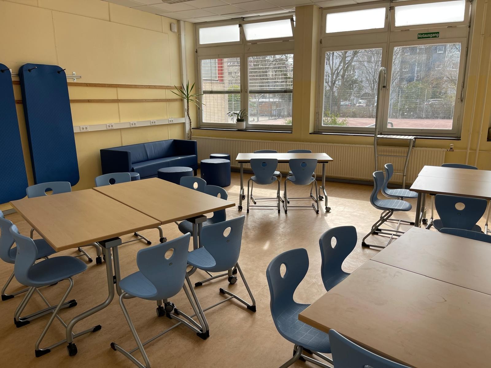 Im Rahmen des Investitionsprogramms Ganztagausbau konnten an der Mascha-Kaléko-Grundschule in den vergangenen Tagen zahlreiche Räume umfassend neu ausgestattet werden. Davon profitieren insbesondere Klassenräume in Doppelnutzung (Unterricht und Freizeitangebot), die Mensa sowie die Funktionsräume der ergänzenden Förderung und Betreuung (eFöB).